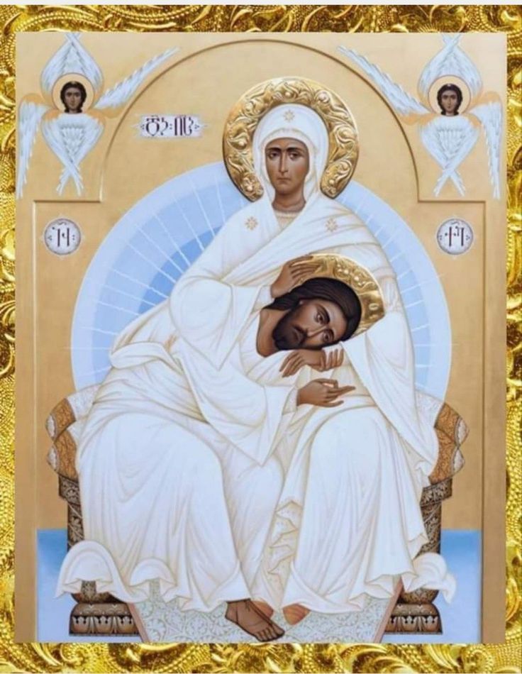 Furthermore, Mary serves as the anti-typical embodiment of the sacred relics housed within the Ark of the Covenant. Just as the Ark contained the tablets of the Law, the manna, and the staff of Aaron, which collectively pointed to God’s covenant and presence among His people, so too did Mary encapsulate the ultimate fulfillment of these sacred objects in the person of her Divine Son. She held not only the Divine Word, the Logos made flesh, but also embodied the High Priest in the order of Melchizedek, as referenced in Hebrews 5:8-10. This priestly lineage emphasizes the unique mediating role of Jesus, who offers Himself as a perfect sacrifice.