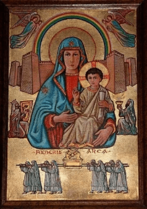 This text is often interpreted within the framework of the Catholic dogma concerning Mary’s Assumption into heaven. In Catholic theology, Mary is viewed as the new Ark of the Covenant. Just as the original Ark contained the tablets of the Law, manna, and Aaron’s rod—symbols of God’s presence and covenant with Israel—Mary bore Jesus Christ, the Word of God made flesh, who fulfills the Old Testament covenant.