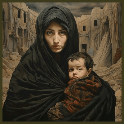The reference to Rachel weeping for her children draws on the poignant imagery of Rachel, one of Israel’s matriarchs, who embodies themes of motherhood, sorrow, and loss in the Biblical narrative. In this context, Rachel’s lament serves as a powerful symbol of the collective grief experienced by the people of Israel, mourning not only the tragic loss of their children but also the profound destruction of their nation and cultural heritage. This deep emotional resonance is particularly felt as Rachel is portrayed as the archetype of all mothers who have faced the heart-wrenching pain of losing their children amidst the savagery of war, displacement, and devastation.
